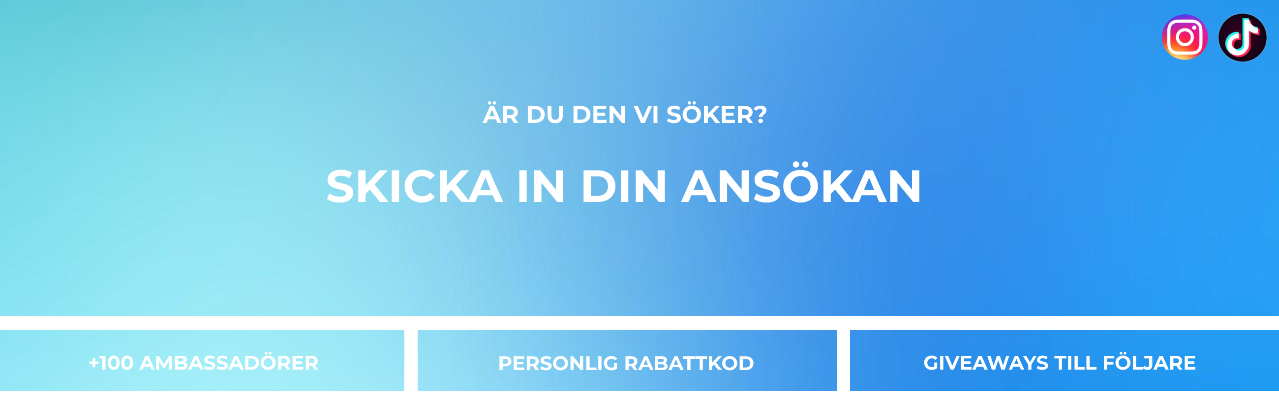 Din ansökan ska innehålla info om dig, länkar till dina sociala medier samt motivering varför vi ska samarbeta med just dig. Märk ditt mail med ”Ambassadör”